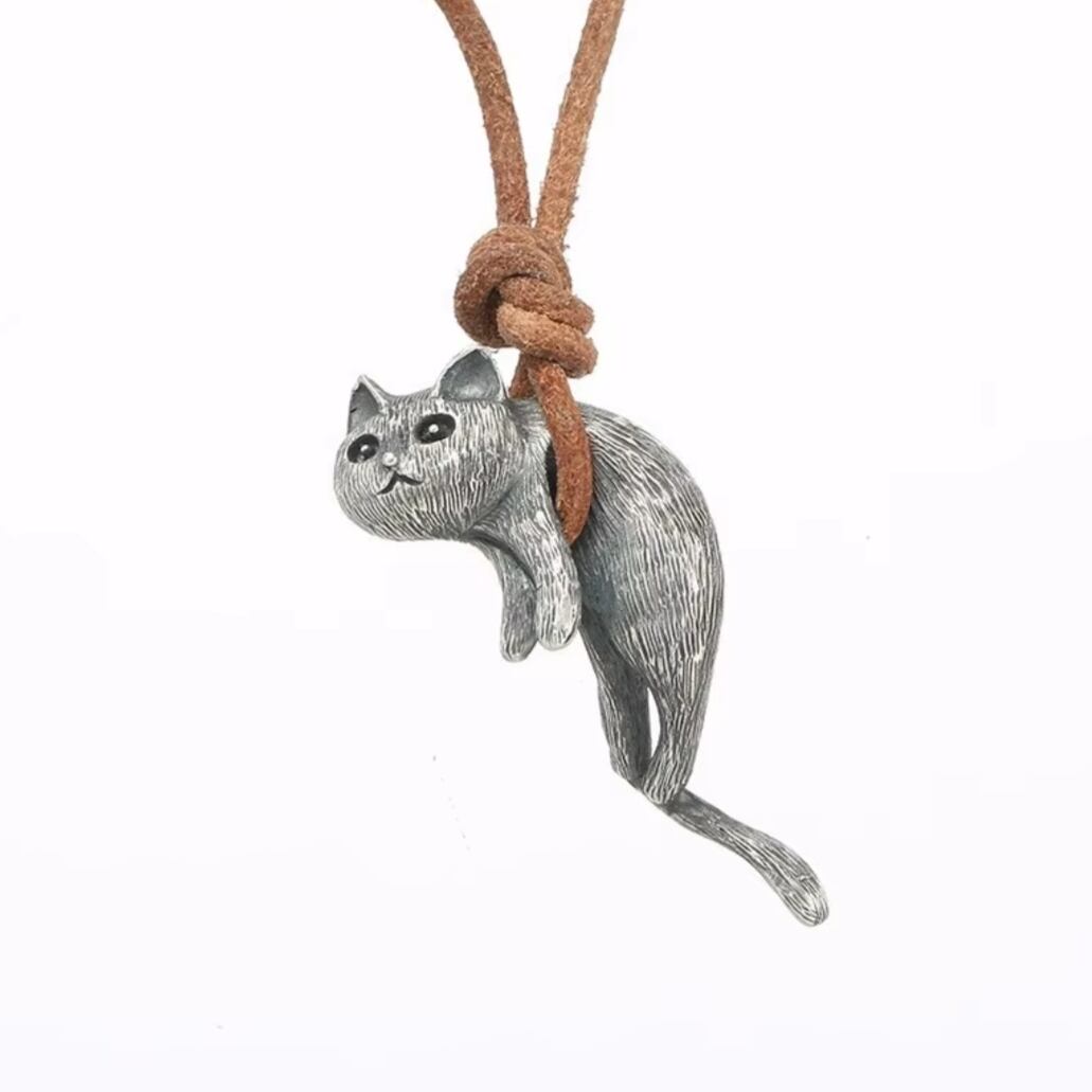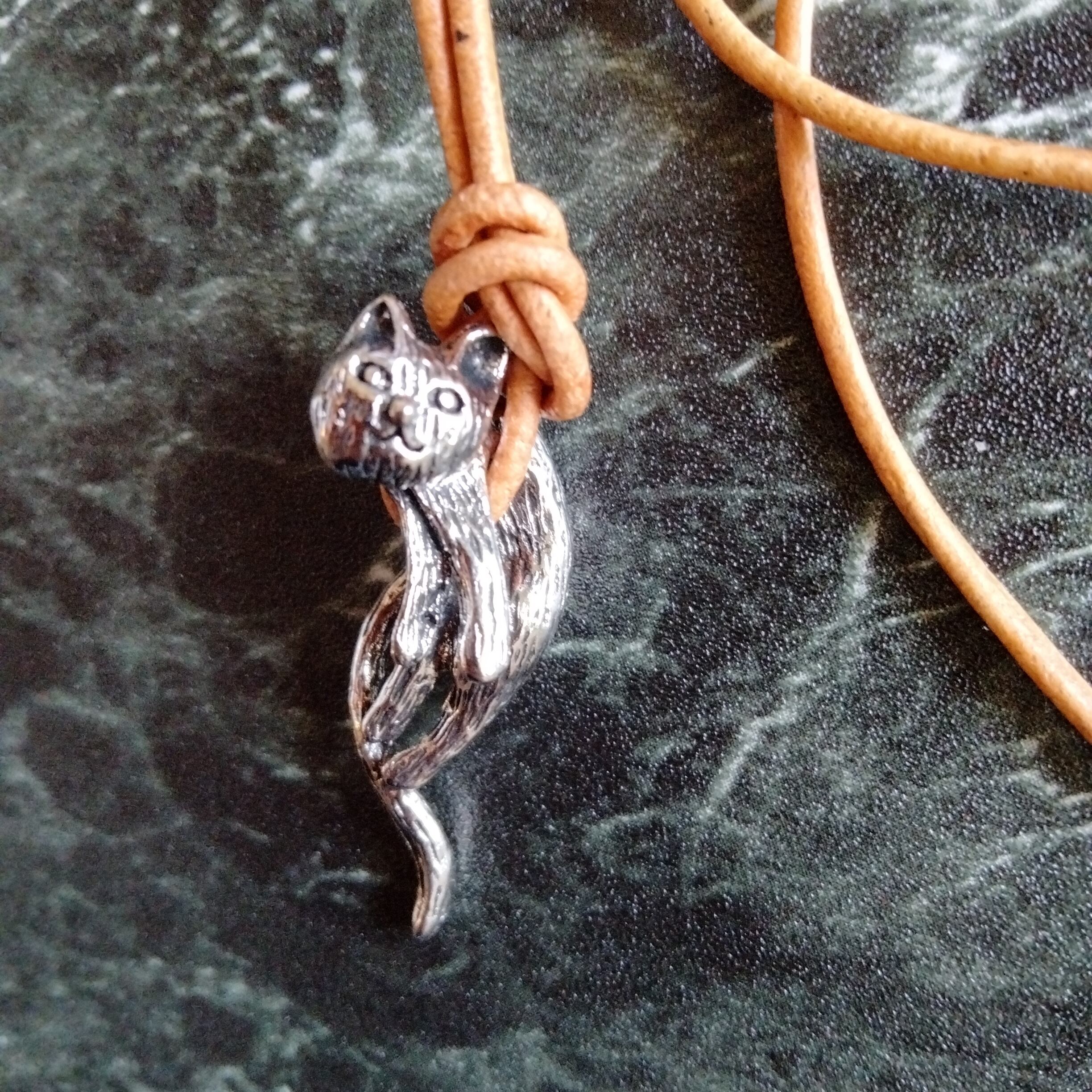 猫の形をしたシルバーのペンダントネックレス、カジュアルなスタイルに最適。