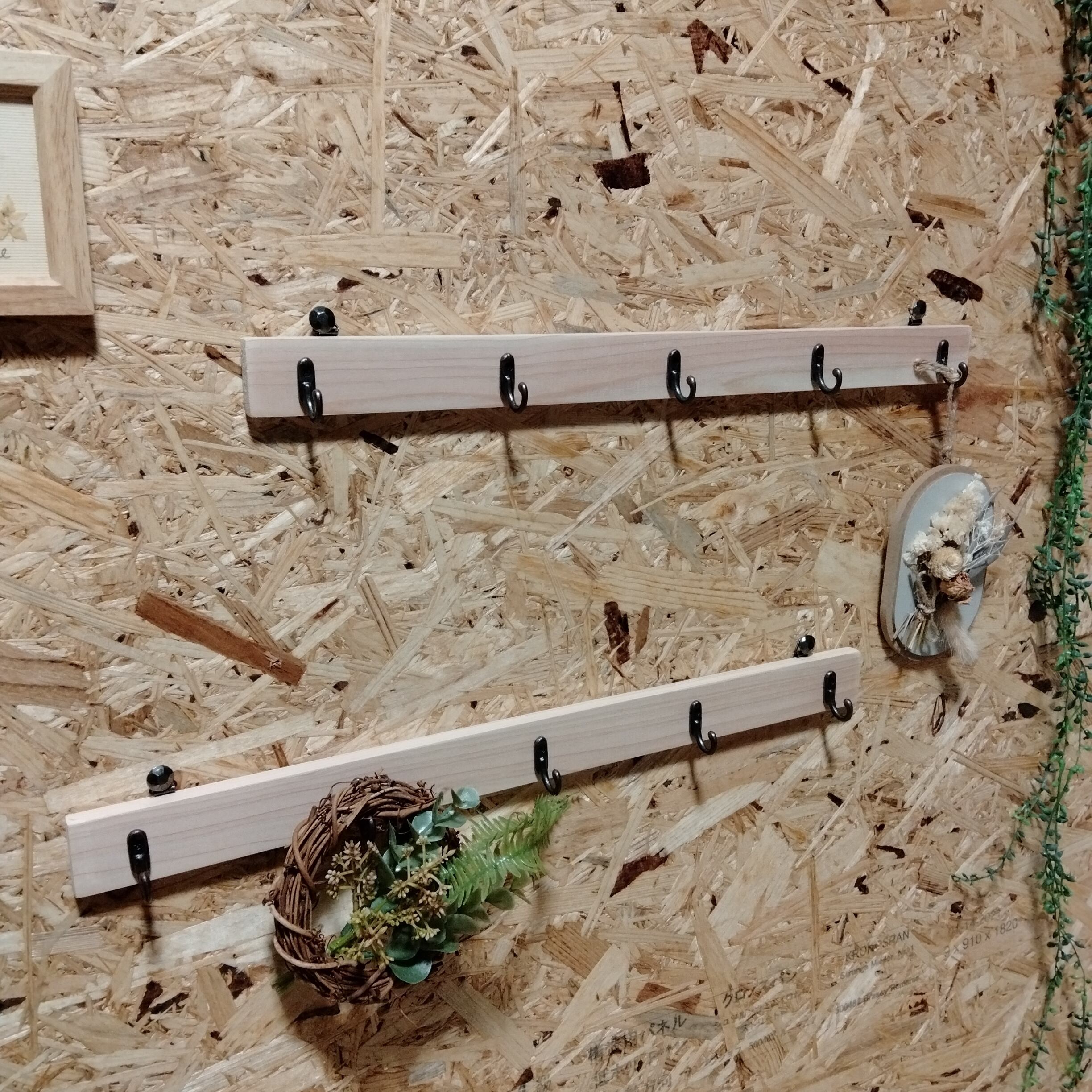 【 No.2 壁掛けフック 45cm 5連 2本セット 】★ ハンドメイド