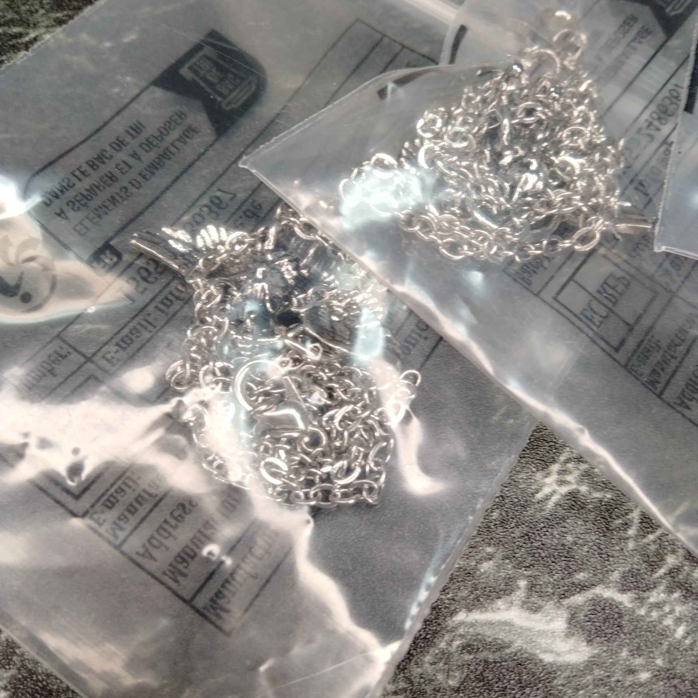 ファンタジー風の彫刻が魅力の、可愛らしい天使と猫モチーフのネックレスです。