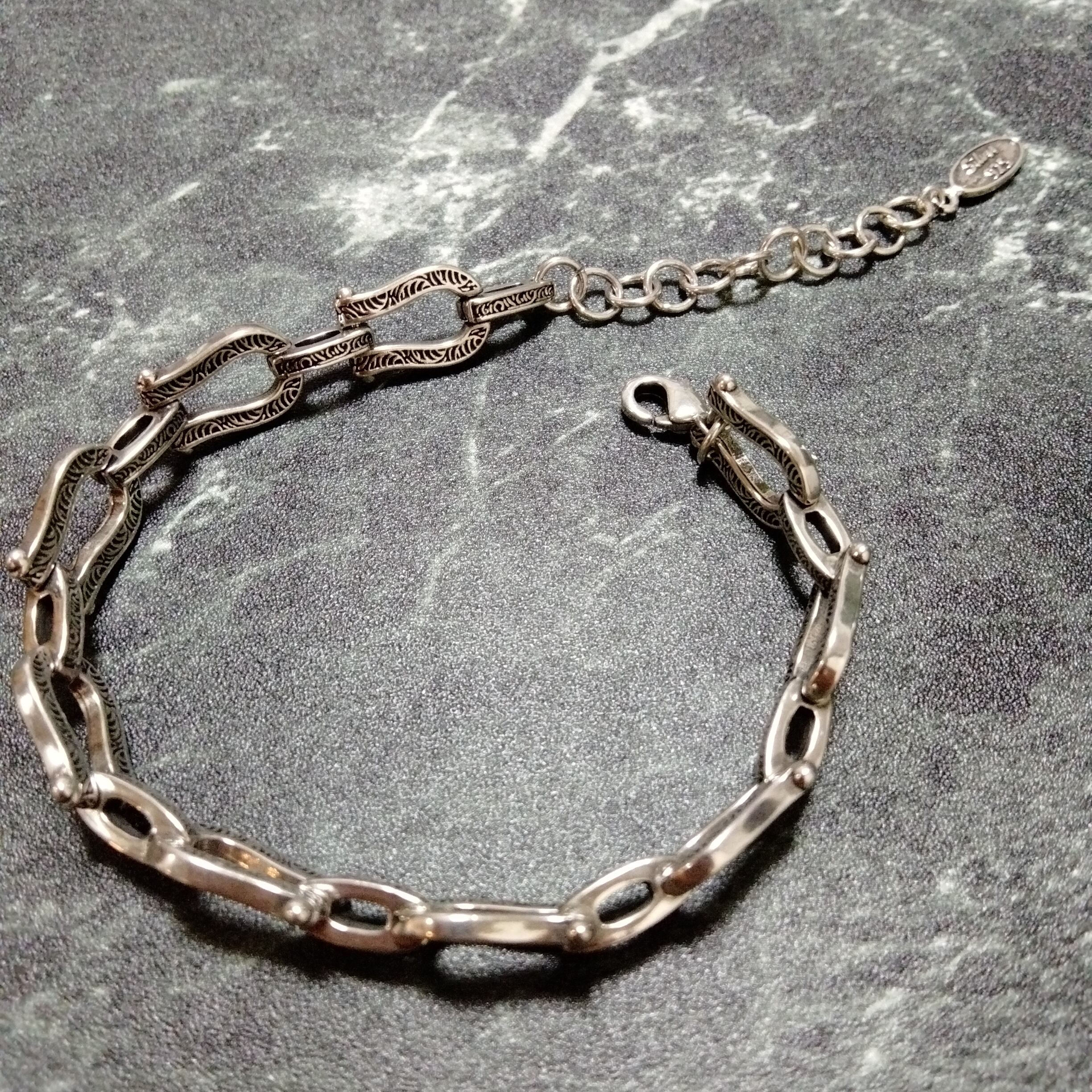 シルバー925製のリンクチェーンブレスレット、アジャスター付きで長さ調整可能。