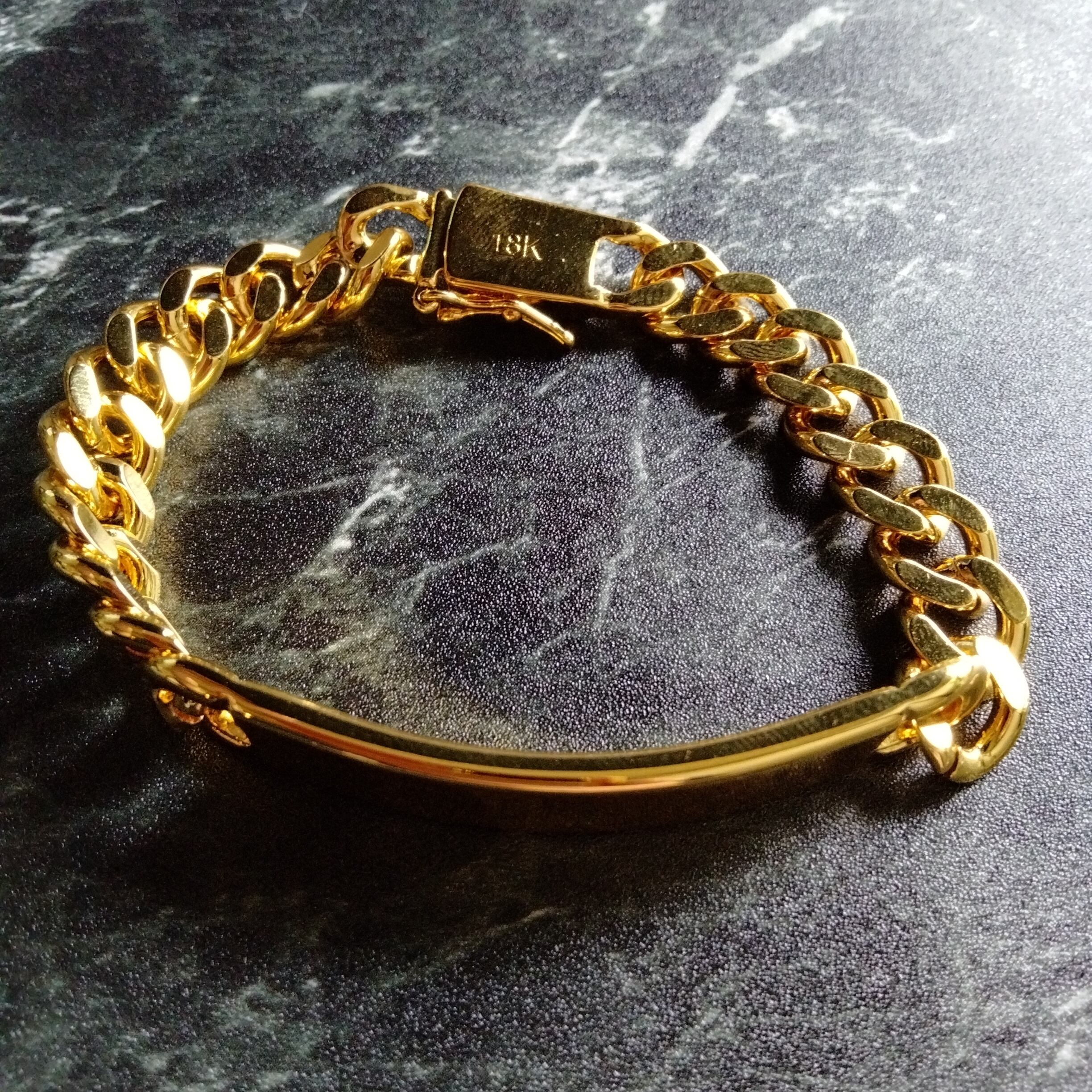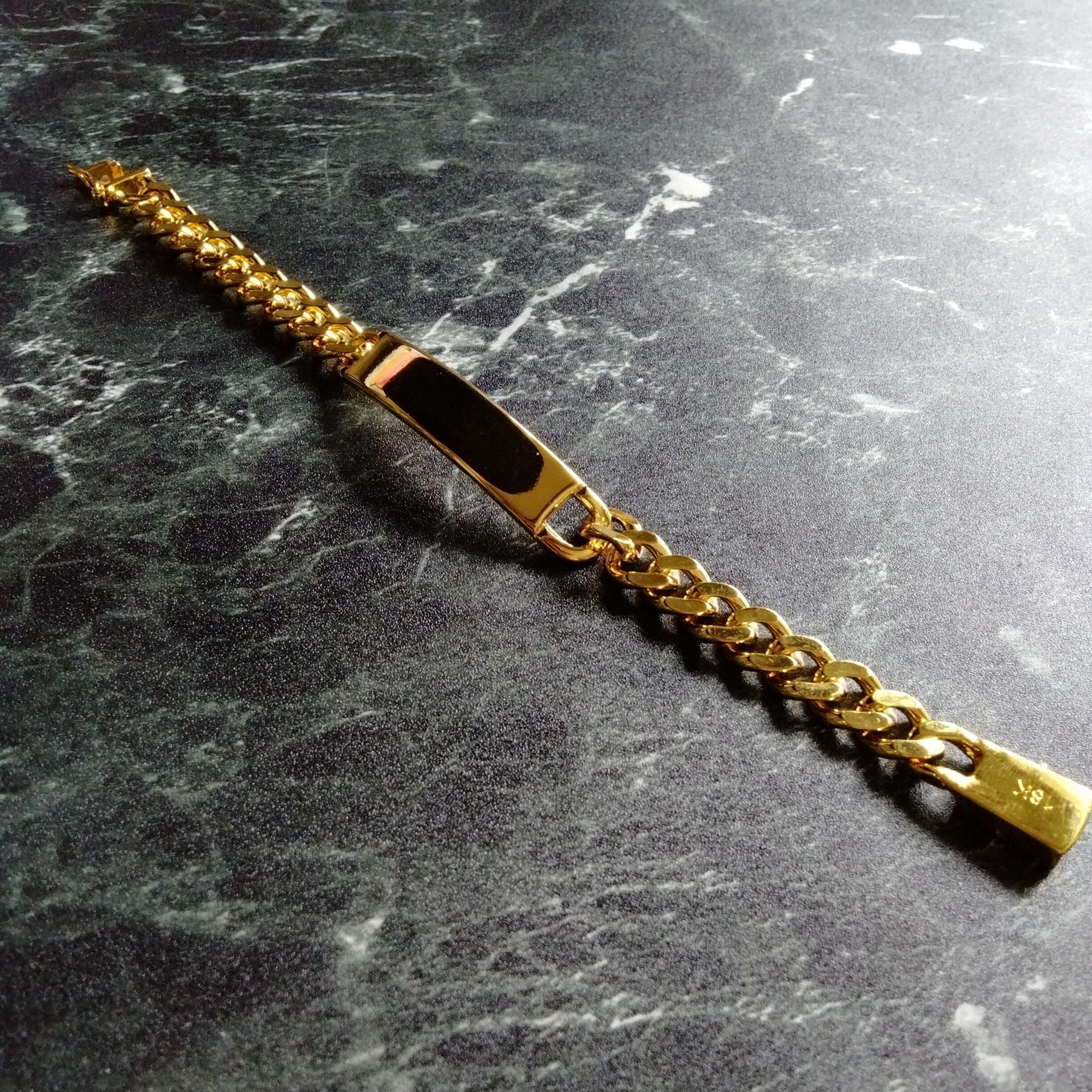 金メッキの20cmチェーンブレスレットで、シンプルでスタイリッシュなデザイン。